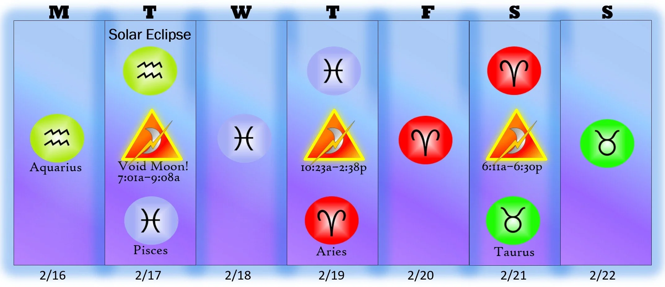 ASTROCAST for the week of February 16, 2026. All times = ET.